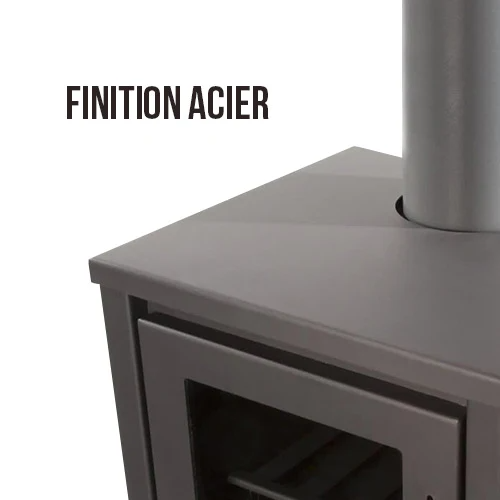 Le véritable atout de ce modèle est son four encastré avec fonction grill et thermostat intégré, parfait pour préparer pains, pizzas, gratins ou viandes grillées tout en profitant de la chaleur du bois. Il combine ainsi chauffage performant et cuisine authentique au feu de bois.